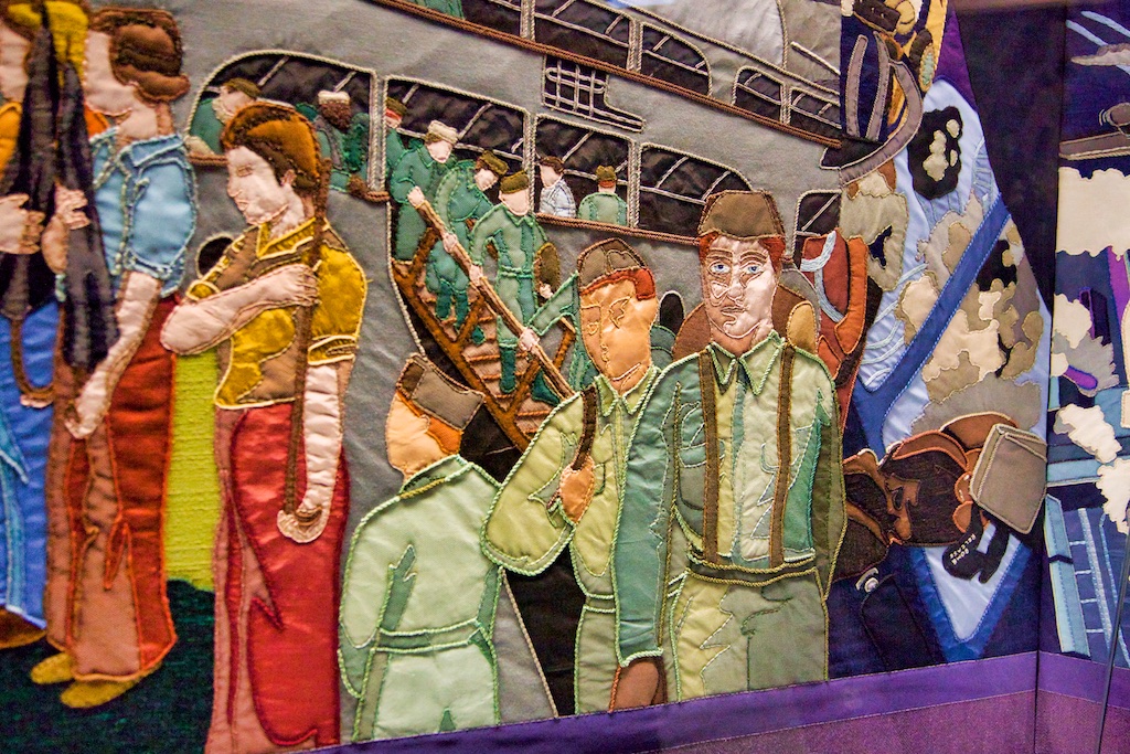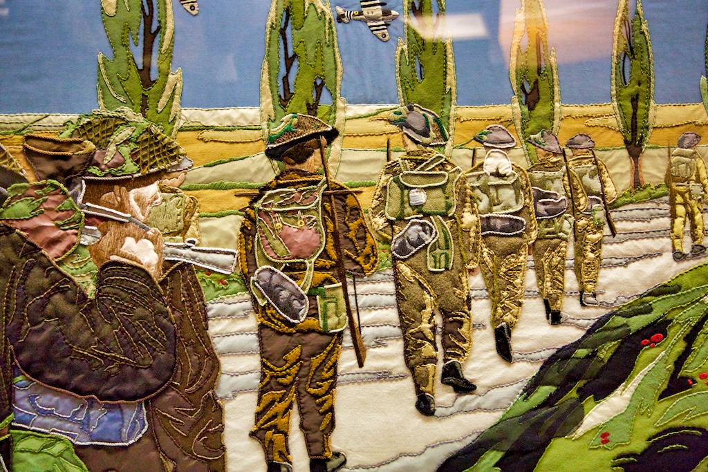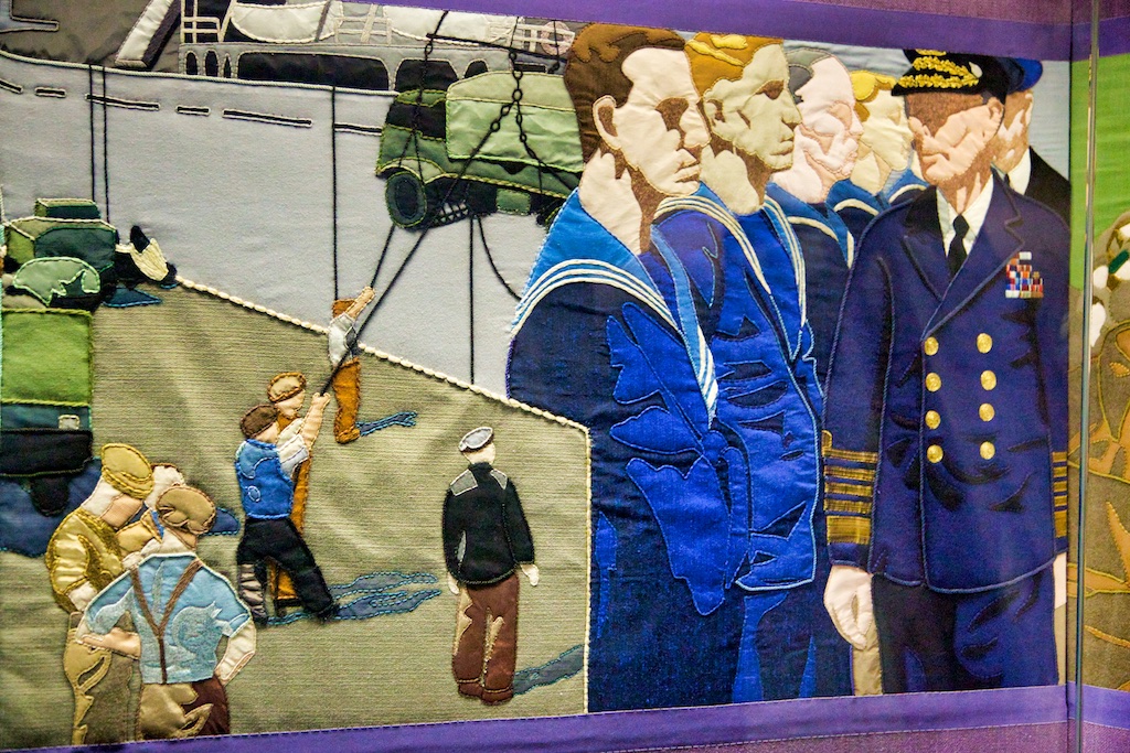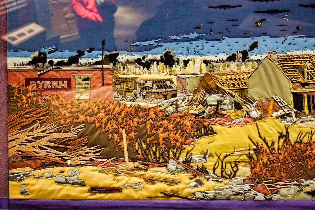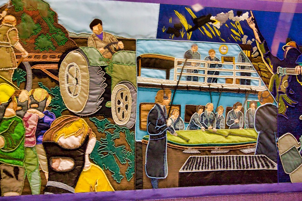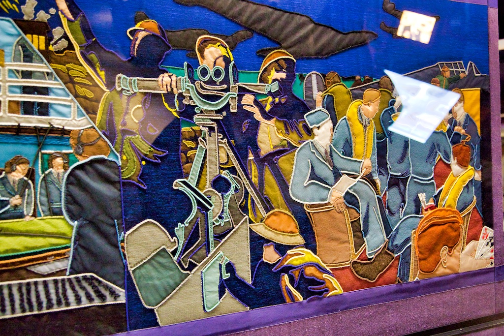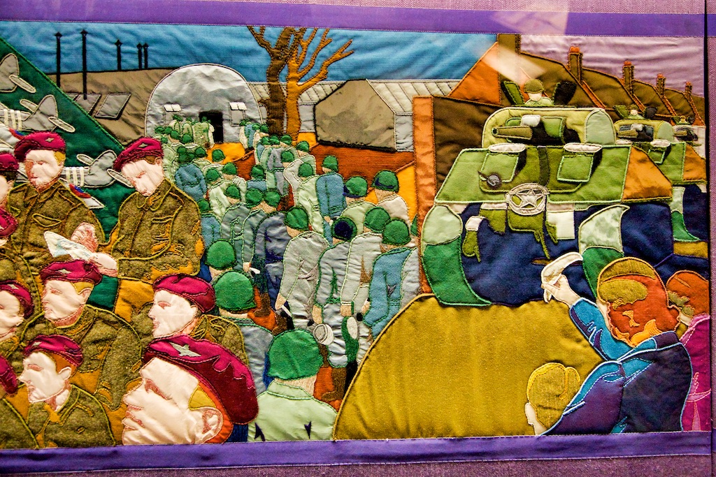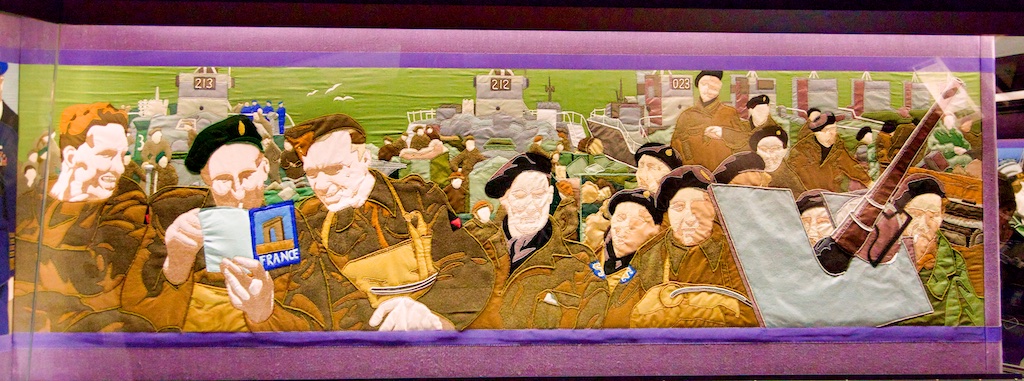 It took five years for twenty students of the Royal College of Needlework, to compete this tapestry record of Operation Overlord. The events of this World War II invasion of Europe have been worked in embroidery to a design by Miss Sandra Lawrence. The thirty-three panels of the tapestry are now permanently housed in a special exhibition at the D Day Museum in Southsea.