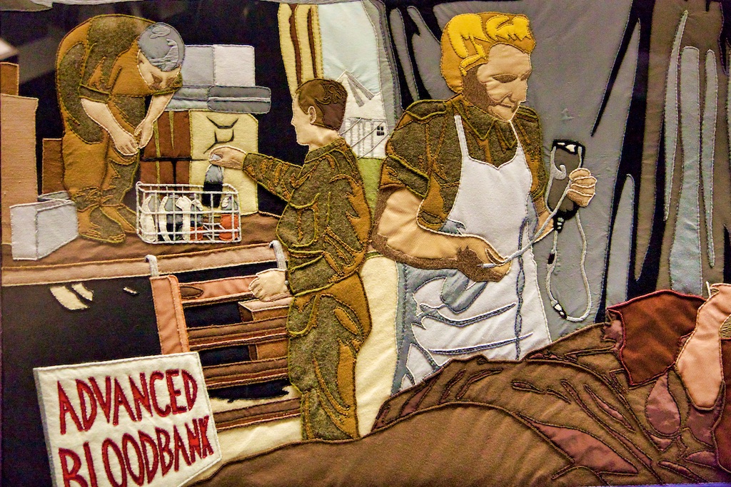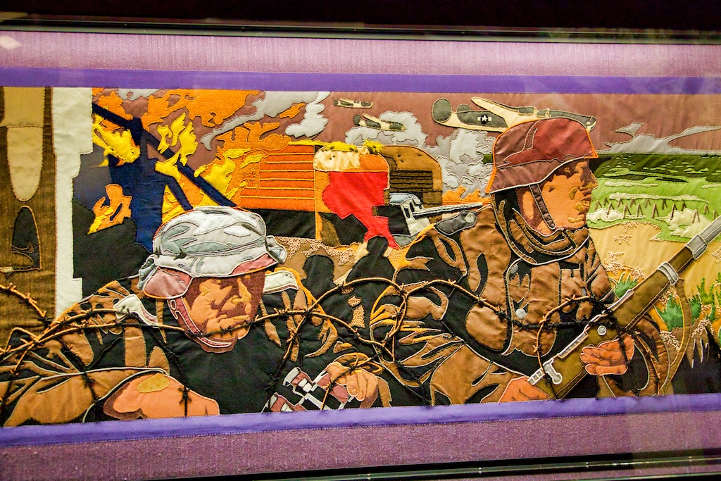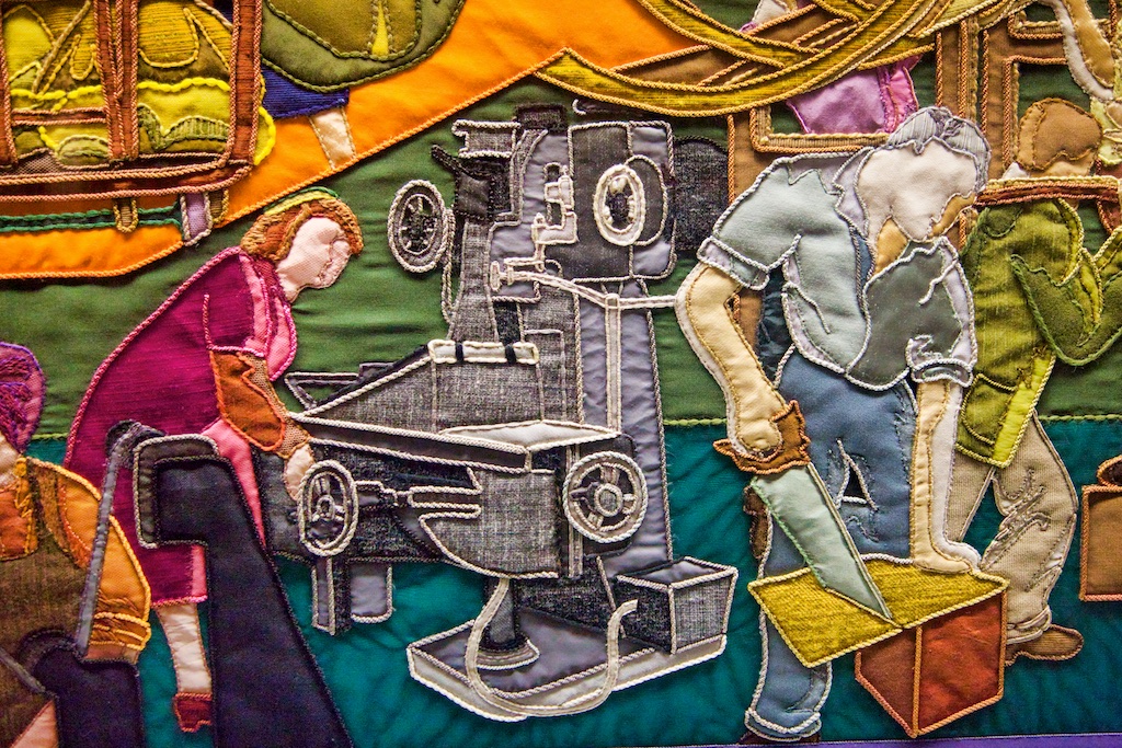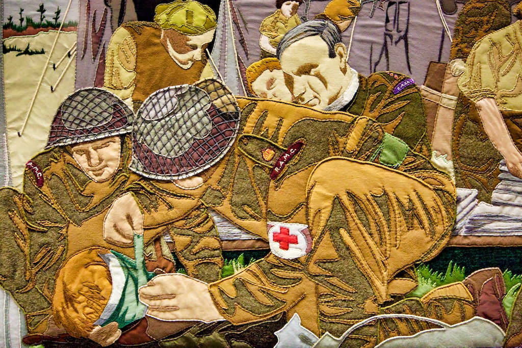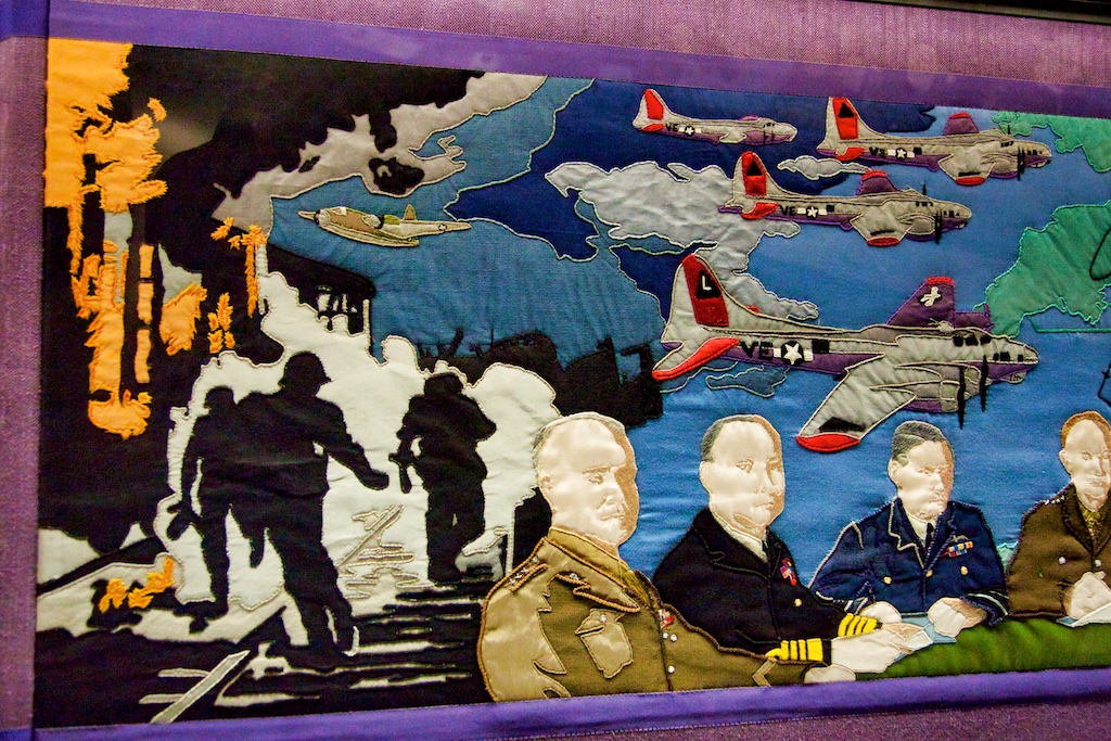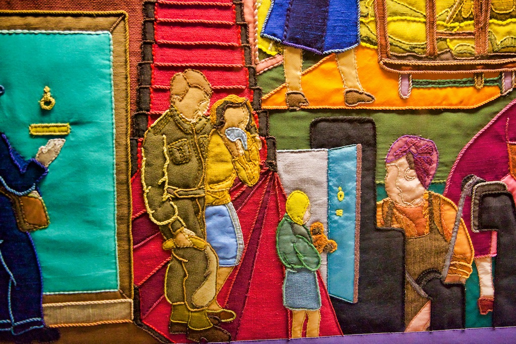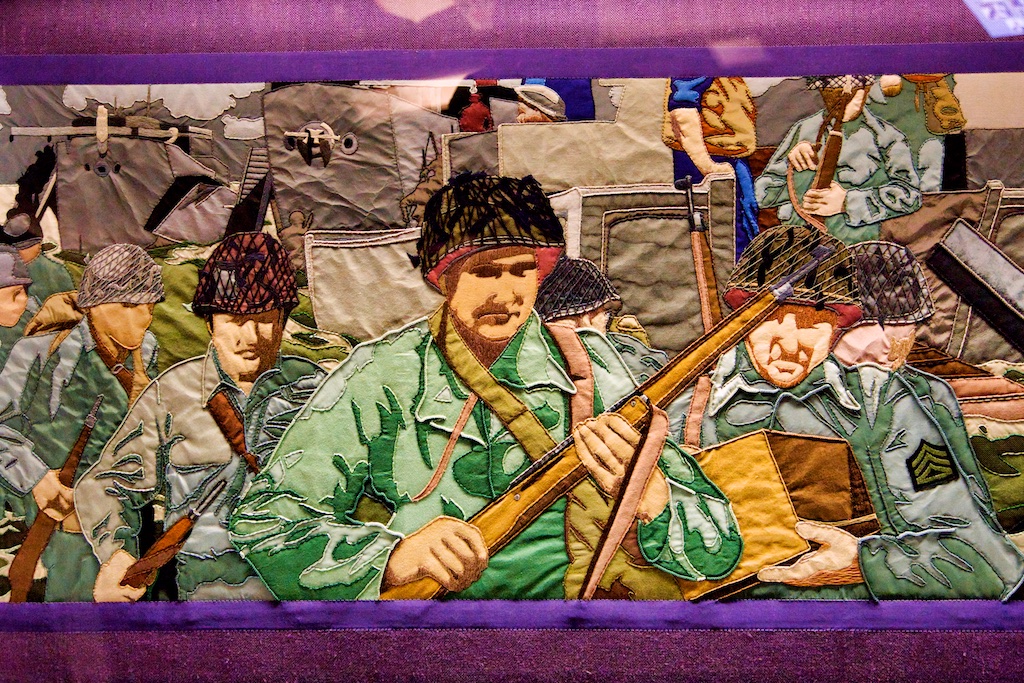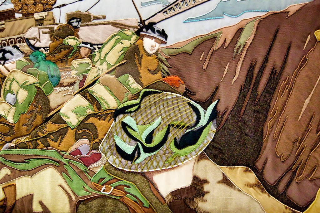 It took five years for twenty students of the Royal College of Needlework, to compete this tapestry record of Operation Overlord. The events of this World War II invasion of Europe have been worked in embroidery to a design by Miss Sandra Lawrence. The thirty-three panels of the tapestry are now permanently housed in a special exhibition at the D Day Museum in Southsea.